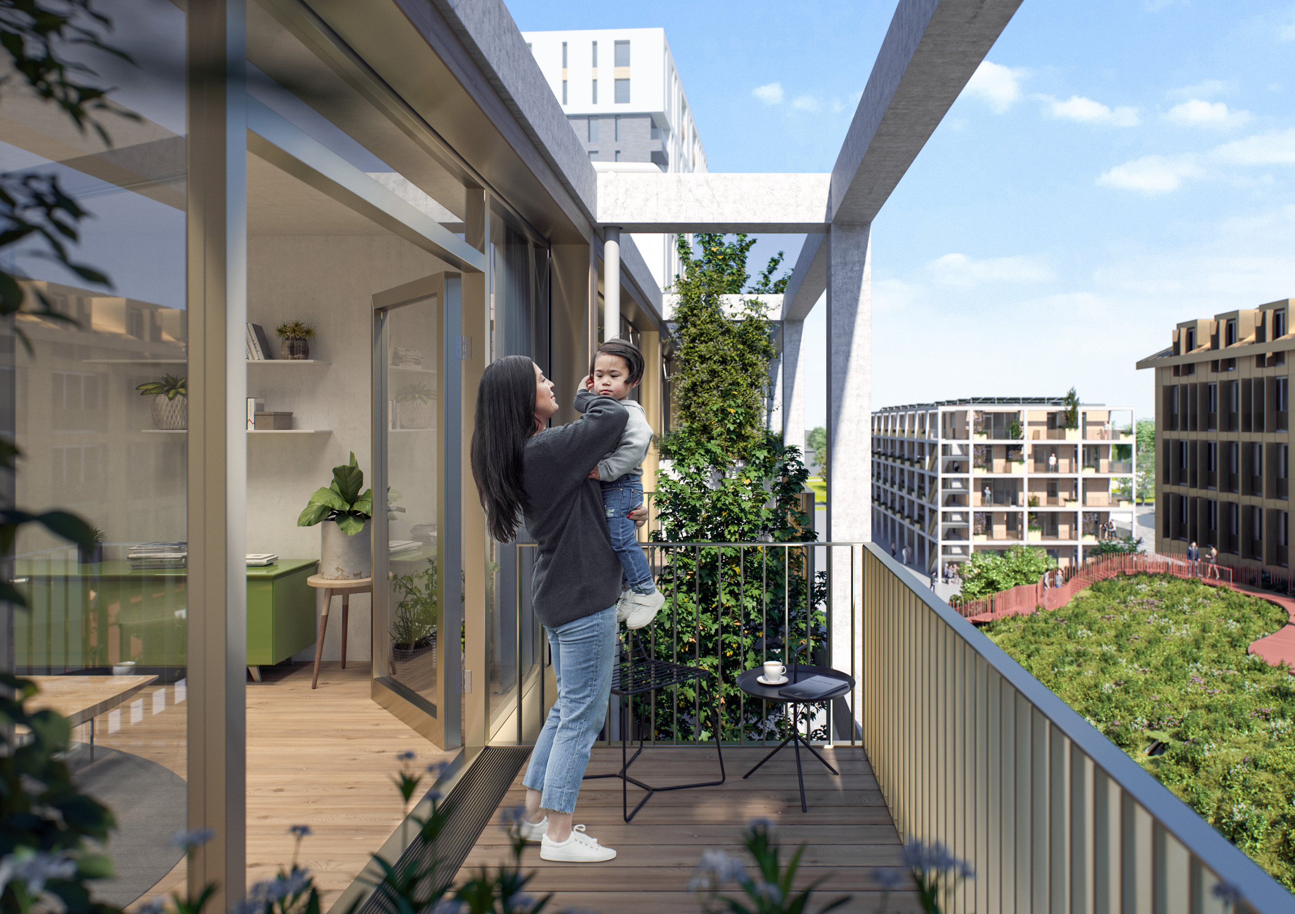 Located in the heart of the Franklin Mitte district and adjacent to the Green Hill (Grüner Hügel), also designed by MVRDV, the development includes 56 apartments and a commercial unit. The timber hybrid building features an open, grid-like structure with spacious balconies and a vertically greened façade, which enhances the microclimate, supports biodiversity, and contributes to a vibrant, green urban centre.