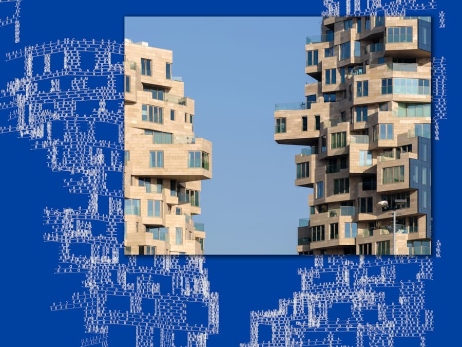 The three towers of Valley have jagged floors with cantilevers and setbacks populated by greenery, creating a rocky landscape to evoke the sensation of being in a verdant valley. While the complex shape of the building creates unique spatial qualities, it poses significant challenges for the materialisation and fabrication of its façade. Natural stone cladding, laid in a seemingly random pattern, emphasises the irregular geometry. Due to the complexity of Valley’s shape and the sheer size of the project (the façade covers 42,000 square metres), manually designing this random pattern was simply not feasible. Instead, a custom computational workflow enabled the design, standardisation, and successful installation of more than 40,000 natural stone tiles.