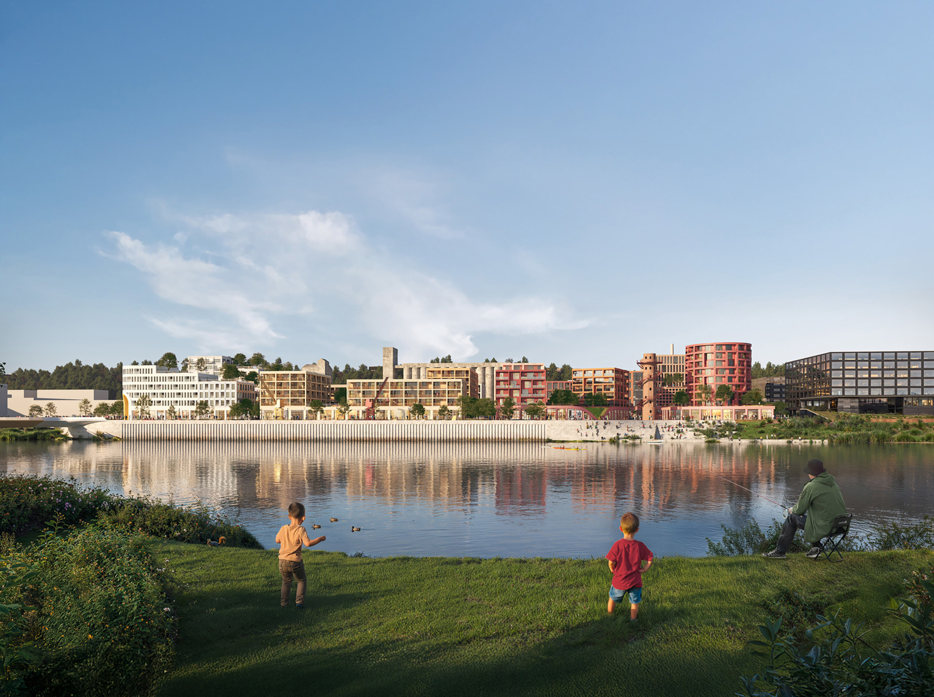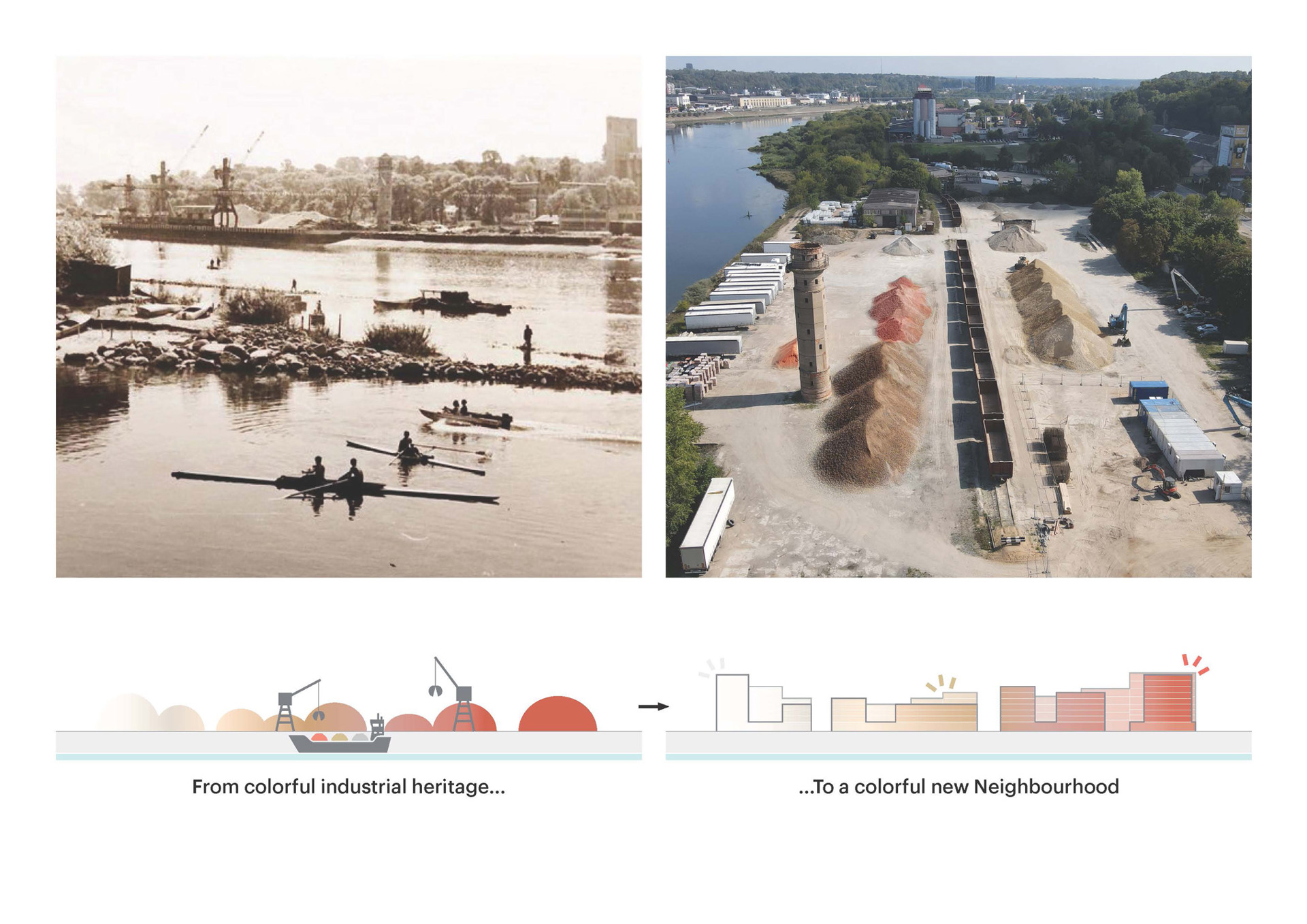 MVRDV’s competition entry for the south bank of the Nemunas River proposed to transform a former mineral quay into a mixed-use neighbourhood that connects Kaunas’ industrial past with a sustainable urban future. The design combines a colour gradient that evokes the site’s industrial past, contextual responses to the site’s qualities in the present, and innovative approaches to construction and resilience that look towards a sustainable future. With its vibrant mixture of uses and multi-layered public spaces, the design envisages a dense neighbourhood and a vivid lifestyle; with this development, the urban core of Kaunas crosses the river.