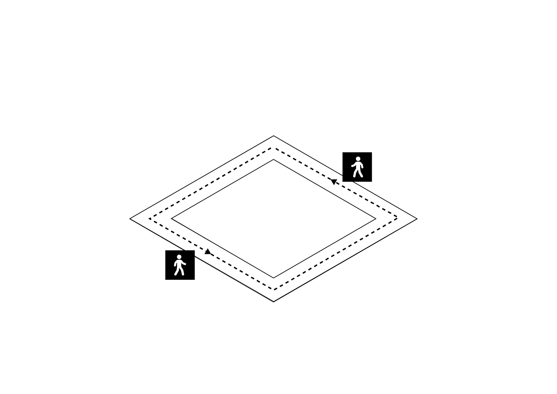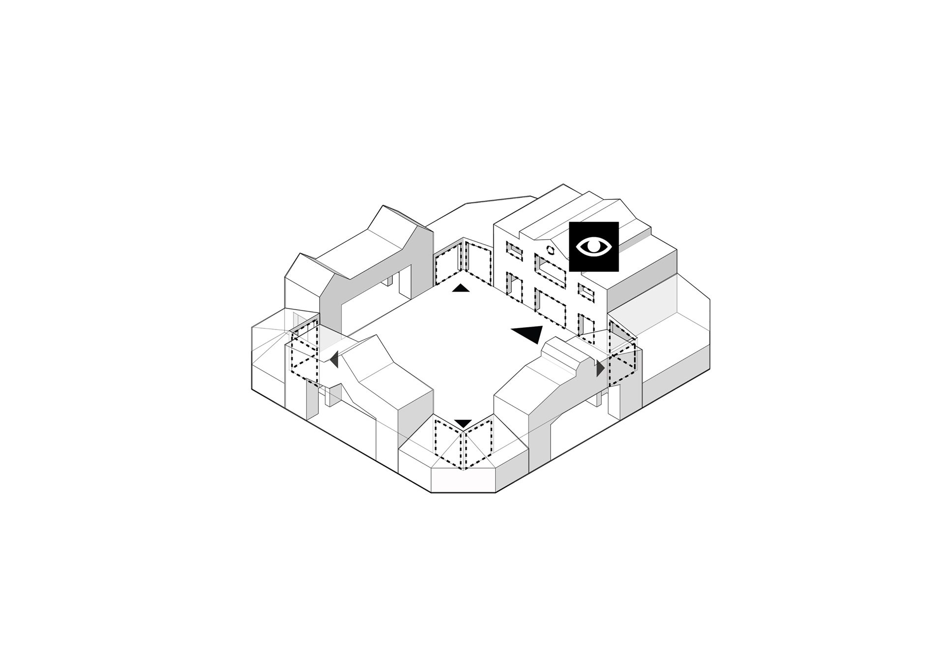These elements are echoed in the pavilion design, with its four chamfered corners echoing the city’s corner cafés and restaurants, while each side of the pavilion is highlighted by a roofline inspired by notable wooden buildings such as a museum and police station. Three of these sides form gateways towards the courtyard, with the pastel colours of their interiors – a detail that also references the colours of the original buildings they represent – welcoming visitors into this urban living room.
