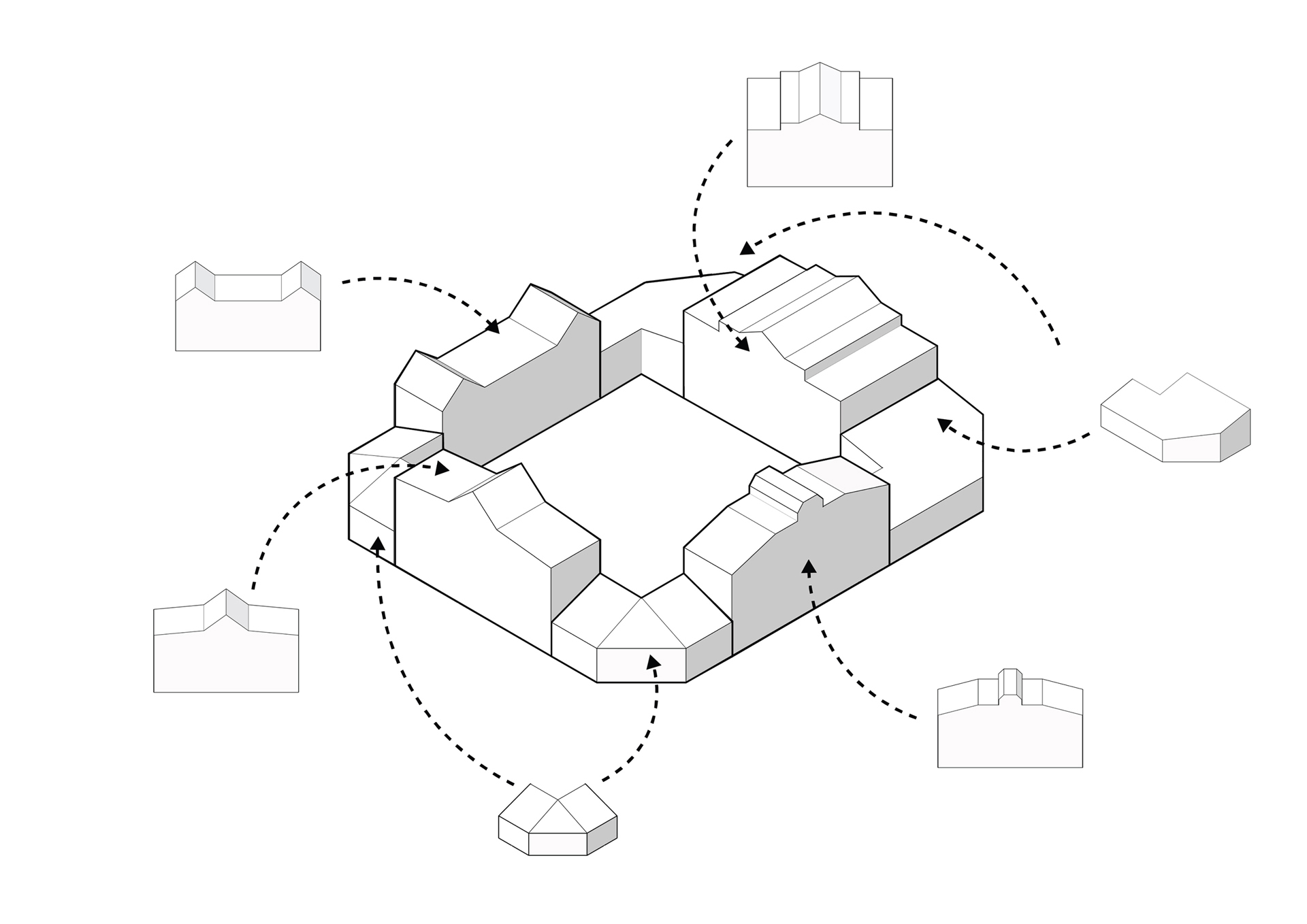 For the design of the pavilion, MVRDV began with an architectural study of the existing timber buildings of Chiayi. What they found was an eclectic mix: timber buildings were represented in a wide variety of time periods and styles; nevertheless, the design team did identify a number of common features that distinguished Chiayi’s timber architecture, such as diagonal cuts to emphasise street corners, and elaborate rooflines resulting from ornamental crowns and decorative façade elements.
