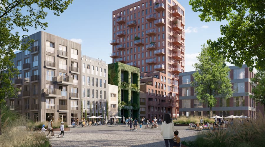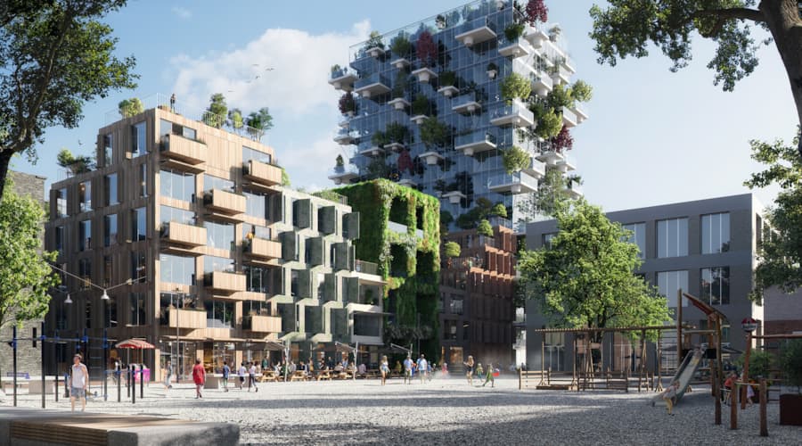 “It will be a green complex that, in my view, is not only good for people but also for birds and insects”, says MVRDV Founding Partner Winy Maas. “One building will be made of rammed earth, an ancient and sustainable building method; another will have a completely green facade. Nesting boxes for house sparrows, swallows and bats will also be integrated into various façades. They create a cute street in the best Amsterdam tradition, but much greener.”