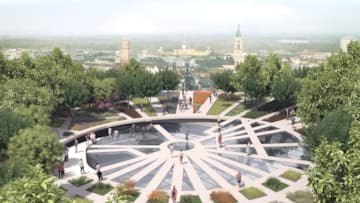 MVRDV masterplan for Ettlinger Tor in Karlsruhe: a reflective floating garden counterpoints the absolutist castle