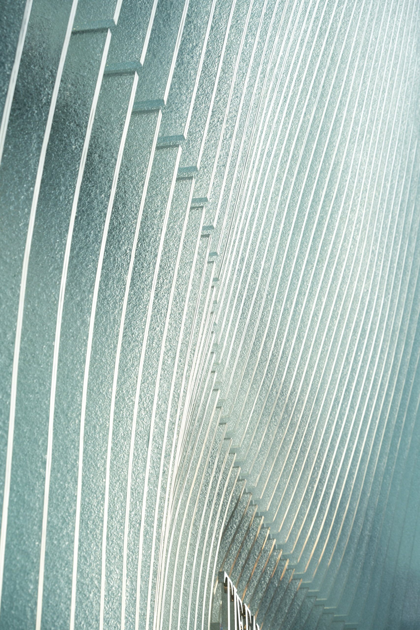 At night, the glass – already carefully selected for its natural blue tone – is illuminated in Tiffany & Co.’s iconic Tiffany Blue®, giving the store a diffuse glow. To ensure an elegant appearance, lighting modules are built directly into the specially designed brackets that hold the glass fins, minimising the presence of hardware that might distract from the subtle light effects created by the glass.