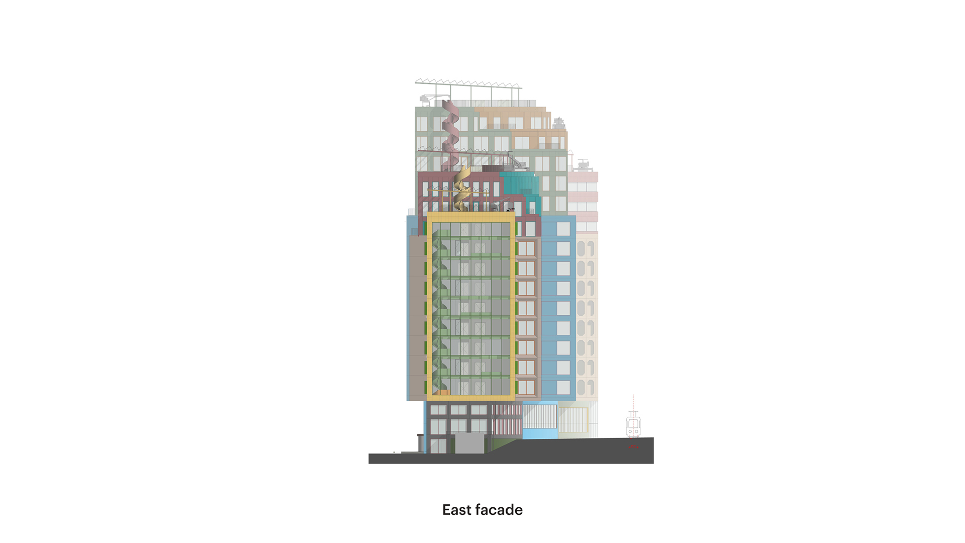 “Squeezing a building in this narrow space next to the railway was a tough challenge – not to mention the complexity of building around a National Monument with the Wokkelbar”, says MVRDV founding partner Winy Maas. “But the Schieblocks will be a colourful addition to the city. This is how people will see Rotterdam when arriving by train: diverse, bright, and bold. And in its boldness it is a call to action for the future of Rotterdam – from the ‘wederopbouw’, the reconstruction, we must shift to the ‘tweederopbouw’, the second reconstruction.”