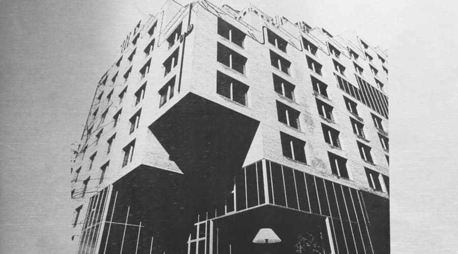 The structure is conceived as a steel rack which permits adaptation to the flexible nature of the organisation. The steel rack is wrapped in a stone skin, it appears as a rock one can climb onto, a strong shape within the boundaries of the Barcode. The niches of this rock provide space for vegetation growth: the positioning of the pixels creates roof gardens or outside areas for every floor. The generic office floors recline and are recessed in various places to reflect the urban context and to create communal indoor and outdoor areas and outstanding daylight conditions.