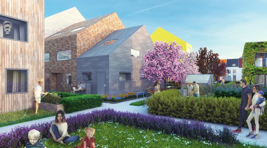 By encouraging a range of different inhabitants to live in the area MVRDV hopes to transform the typical suburban experience into a more richly diverse community where individuality and quality of life are paramount. Houses with green façades appeal to the budding eco-family, bright colours and patterns are on offer for people with highly individual tastes, while more traditional materials such as wood may suit those who are more reserved. Stilt houses open up the ground floor for a more outdoor lifestyle, whereas single-storey houses suit the elderly. Two larger apartment blocks further encourage diversity, offering homes suitable for students or the disabled, among other demographics. In the first phase, the masterplan adds a total of 124 single-family homes and 26 apartments to the Franklin district.