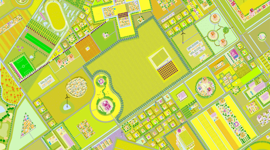 In cooperation with the city of Almere and the Rijksvastgoedbedrijf, MVRDV present the development strategy for Almere Oosterwold. Free design and construction will transform an area of 43km2. Limits are set to ensure the rural character of the area is maintained: 18% construction, 8% roads, 13% public green, 2% water and 59% urban agriculture. An individual’s creativity is limitless within this framework – who knows what forms the houses will take!