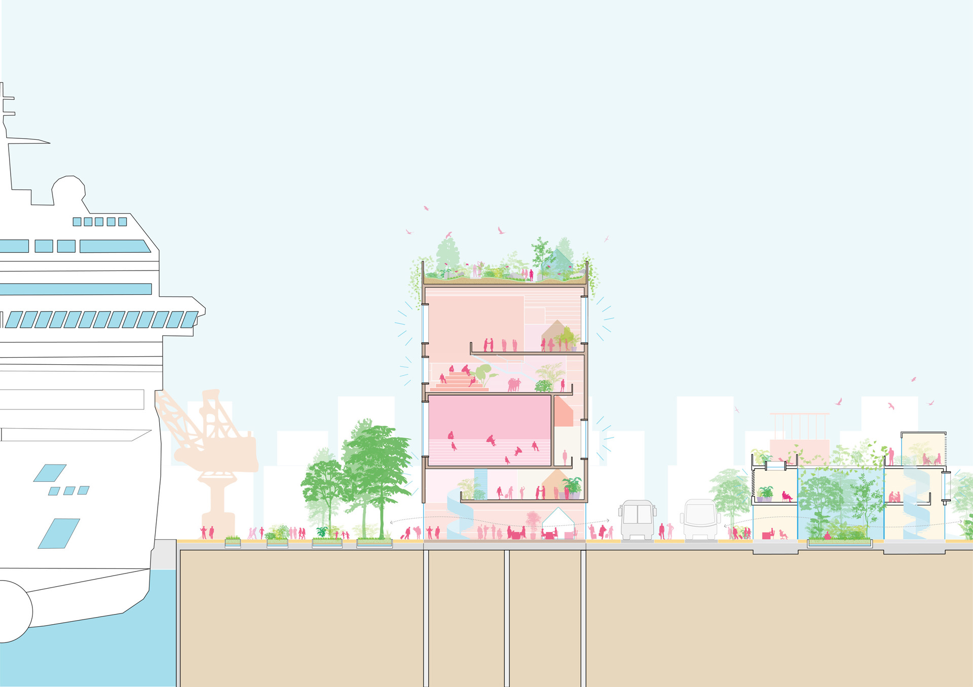 - Hotel, Mixed use, Offices, Cultural, Bar-restaurant, Public space
